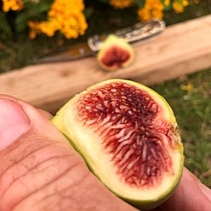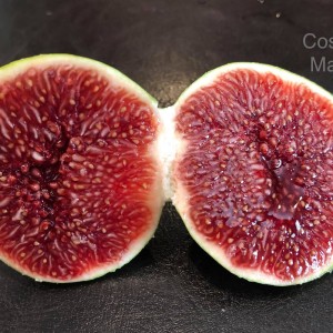 The next couple years most sought after fig could be “Cosme Manyo”. The fig comes from Mallorca via Montserrat Pons Boscana . What makes it so special? Well, it is mid season here, medium to large size and prolific. The flavor is a bit complex as it is sweet with a rich berry flavor. The pulp is sticky and thick. The tree is not dainty like many French figs. It is a robust grower. What a fantastic variety!