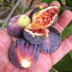 The 'Pellejo DE Toro' figs have a globose shape and marked ribs. The skin is thin and consistent, Black violet, with a white dotted and some marked uniform cracks that give the fig a showy appearance. They are dense, firm and flexible. When it rains, the Ostiole opens forming a star crack. Suitable for fig for fresh consumption. It is one of the most cultivated varieties in the southeast of Spain for its excellent quality figs.