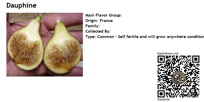 This fig is from France. It has brown and green skin and brownish flesh. It produces two crops and the Breba summer crop ripened well and tasted good at the Mt. Vernon research station in Western Washington