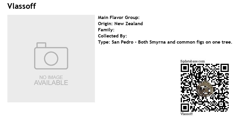 There are several figs in NZ synonymous with the Vlassoff, and they are Anne Stewart, Athenree Dark, Ron's Berry Patch, and Peter Cave's Wanganui fig (a.k.a. Cave's 100yr Wanganui fig and Caves Wanganui fig [NZTCA 22 in the data base]).