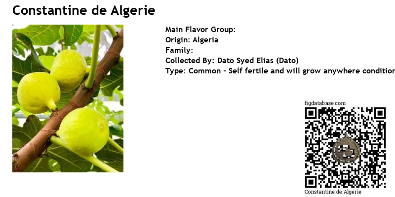 From Algeria, North Africa introduced by Dato Syed Elias, a world leader in fig research and development. It was kept in his collection for some time.