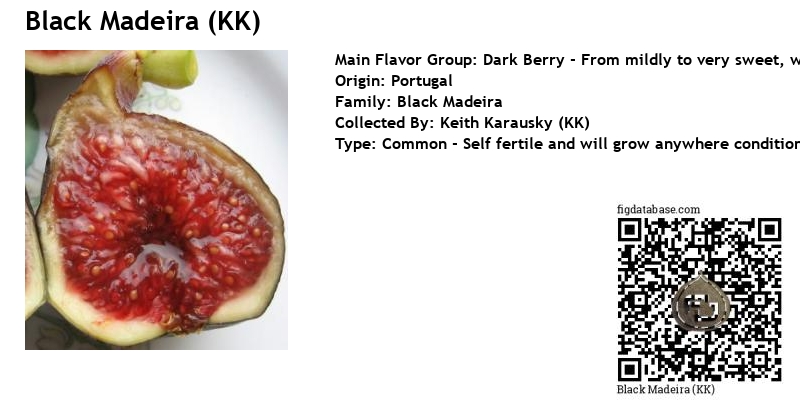 The Black Madeira ( KK ) is a variant that comes from a member KK (Kieth K). His tree originally came form Jon at Encanto Farms Nursery. Jon was the keynote speaker at a CRFG meeting down south and Tyro requested the Chairman of that local to ask him where he got his BM.The response was "from a CRFG member".