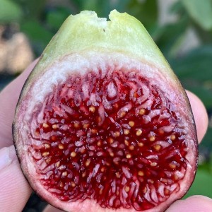 I have ripened a few on my first year tree and each one has been excellent. Deep red interior, thick and jammy, split resistant, complex flavor... I really like the purple staining it gets near the skin. The one below was not quite ripe but I knocked it off trying to put a bag on it. There was still some sap but it was still awesome. It is a really high quality fig in my climate. It also looks like  MP   also rated it highly. This variety has a secure spot in my collection.