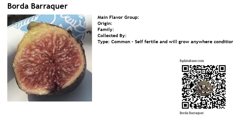 The tree is of medium vigorousness, and good development, with a blunt and arrogant glass, very thick of branches and with a very tight foliage, of light colored leaves, with a good annual growth of the shoots, and with a period of harvest medium, but very generous. The figs are urceolados, almost spherical, symmetrical in the form and uniform in the dimensions, they do not present paired fruits, nor abnormal formations. They are diffuse blue, very whitish and gleaming, with a very fine cracked very peculiar, scattered throughout the fig when maturation is advanced. The pulp is garnet, juicy and tasty, the achenes are small but in great quantity. The skin is thin and thin, easily peeled. They have an easy abscission of the peduncle, and sometimes they present a drop of honey in the ostiolo. They are resistant to rain and the opening of the ostiolo, very sensitive to transport and sufficiently resistant to detachment.