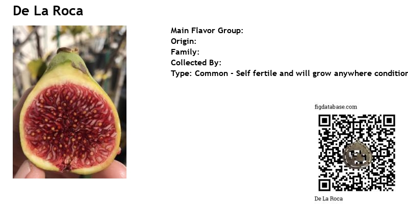 As Roca: Described and illustrated by Estelrich (1910) as a small, spherical fig, ruddy blue in color, maturing from September to mid-October. Consumed fresh by farmers; also fed to hogs.