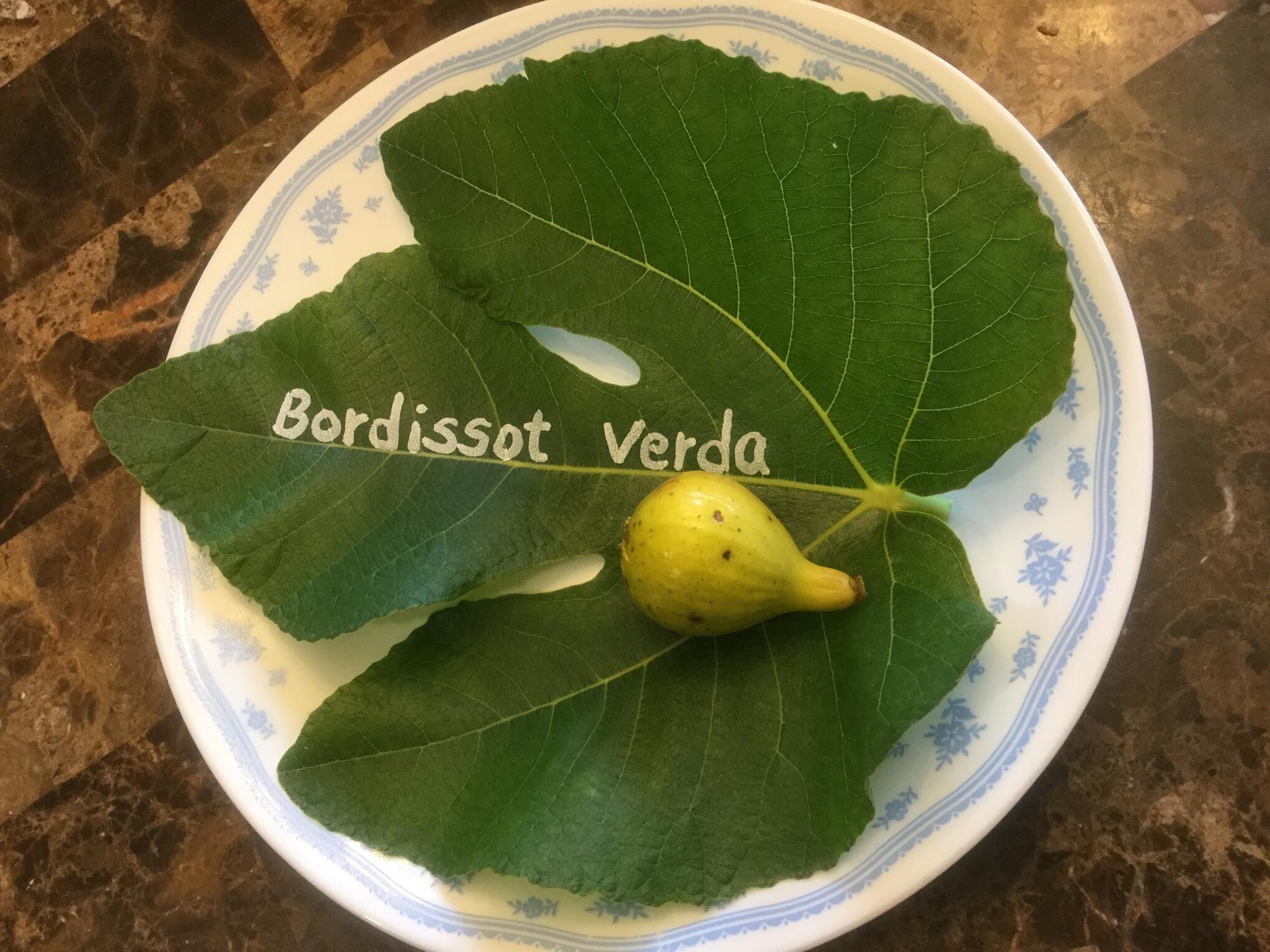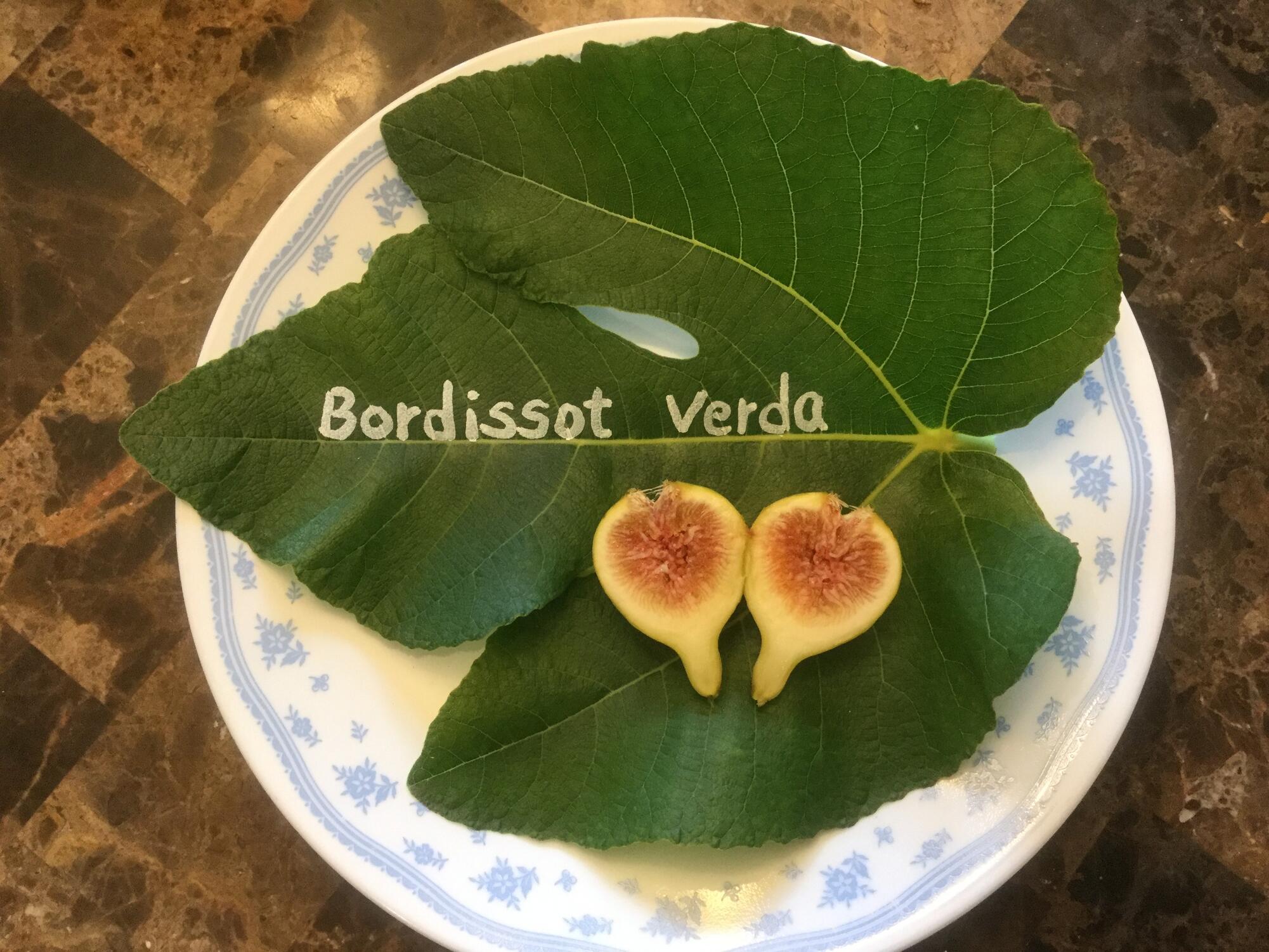 Bordissot Verda is a traditional Balearic fig cultivar of Ficus carica from the historic fig collections of Montserrat Pons i Boscana in Llucmajor, Mallorca (Balearic Islands, Spain). It is part of the broader Bordissot family of figs — a group of cultivars distinguished by their flattened or squat fruit shapes and diverse skin and pulp colours. Montserrat Pons documented numerous Bordissot variants, of which Verda (“green”) is one of the rarer and more distinctive types.