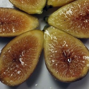 Very cold tolerant. Hunt fig trees have large, long-necked violet brown fruit with amber / light red flesh. Fruit has a short stem but long neck, allowing the fruit to hang down as it ripens. This habit adds to it’s rot resistance, as the eye of the fig is less adapt to fill with water. Long ripening season. The trees are very dependable producer. Rich sweet flavor. Closed eye. Fruity ripens in July.
