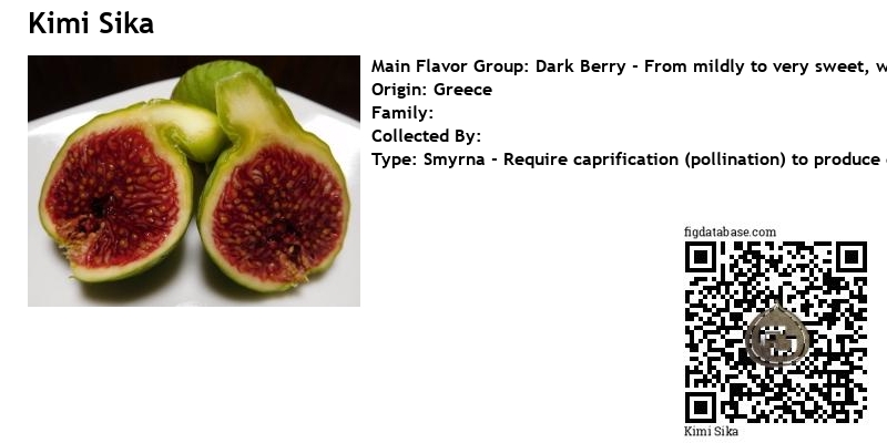 Kimi Sika is from the Grecian Isle of Evia. There, they grow them commercially. When harvested, the figs are split in half and dried in the sun. They are then 'buttered' with a sticky honey-like substance and 'glued' back together, before being packaged and shipped out internationally. The figs take on a pumpkin-like shape as they ripen. They are extremely sweet, (nearly twice as sweet as my Panache, for a reference) and have a strong berry jam flavor. The skin is a little chewy, but sweet, and it adds to the eating experience, as it forces one to extend the time that the palate can savor the goodness. An easy 10/10 !