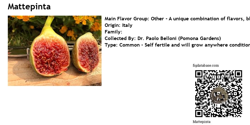 Mattepinta comes from Paolo at Pomona Gardens. The mother tree is huge and this is a local favorite. The colors are amazing and it is juicy and sweet. It’s a Common Fig and super rare to find the real one. This variety traces back to the early 1900’s and is well documented.