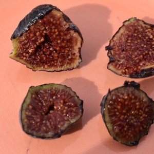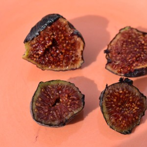 Dark purple almost Black fig with dark burgundy, and deep red jammy interior, very small and tight eye. Paper thin skin comes off with Black / purple ink on fingers. This fig will zing your taste buds and delight your senses with rich raspberry ( foreground) and strawberry (background) flavors. Ripens early to mid Aug in zone 9b. Has Breba crop and prolific Main crop .