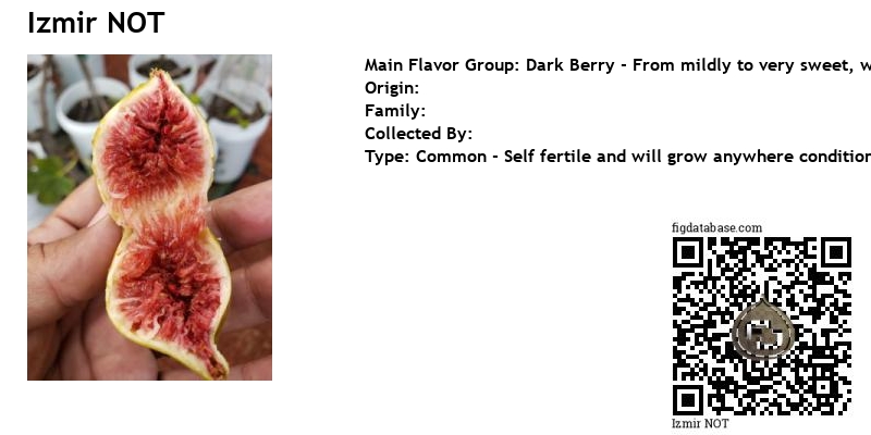 This variety came about by accident and distributed unintentionally by Steve (Fruitnut). At the time, he thought that what he was selling was the original Izmir. Good thing is that Steve is a well respected and honest member of the fig community and as all good people do, he posted his mistake on the distribution of this new variety everyone is calling "Izmir Not".
