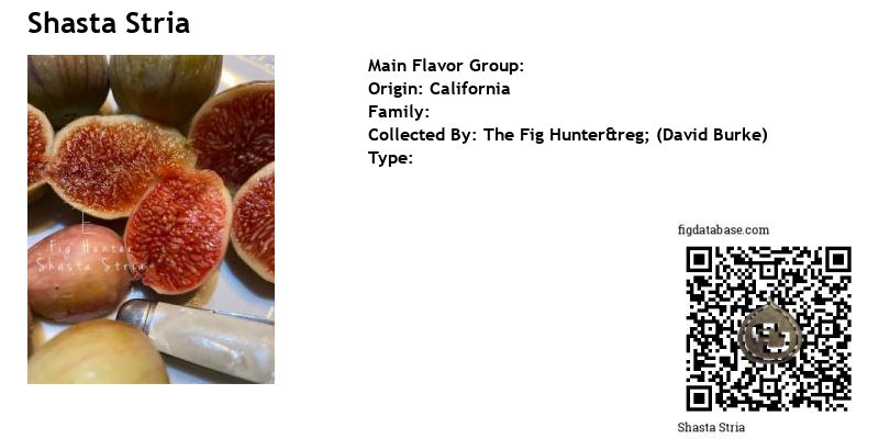 Shasta Stria is a unique fig variety discovered by David Burke, also known as "The Fig Hunter," in Shasta County, California. This variety was found growing out from a fallen rock retaining wall along the edge of overgrown blackberry bushes and weeds. The figs are peachy-colored with darker striations, and the interior shares the same peachy hue. Despite its appearance, Shasta Stria is a deceivingly tart fig with mixed berry undertones and a maple syrup sweetness.