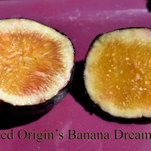 Banana Dream is a striking  Black   fig with a unique yellow to amber interior that captivates both the eyes and the palate. Its luscious, creamy flesh carries a delicate flavor profile reminiscent of banana cream, offering a smooth, melt-in-your-mouth experience. The absence of seed crunch adds to its silky texture, making it a standout variety for those who value both flavor and aesthetics. Its tight  Ostiole   enhances its resilience against splitting and pests, ensuring a consistently high-quality fruit. This rare and exceptional color combination makes Banana Dream a true treasure for fig enthusiasts and collectors.