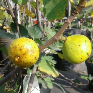 This fig produces a large crop of attractive yellow-skinned figs with sweet amber to light red flesh. The fruits are initially light green and turn yellow as they ripen from late July to early September. A single tree can produce 10 to 15 pounds of tasty figs.