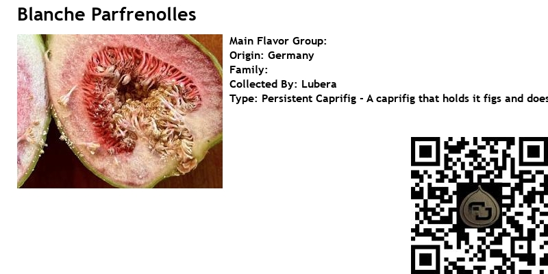 This is a green skinned Caprifig that has a Parthenocarpic ( Persistent ) Profichi crop, meaning that it does not need to be inhabited by the Blastophaga Psenes (fig Wasp ) to mature on the tree. This makes it ideal for hand pollination, as it produces a great amount of pollen from the great many male flowers near the Ostiole . It is not yet known if it is Parthenocarpic on all 3 crops, and to breed Parthenocarpic (Common) figs it would need to be.