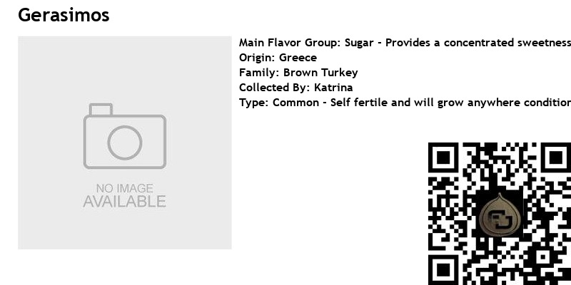 Growers report the figs ripen easily and hold well on the tree without dropping, even when young plants are grown in pots. The variety has shown strong productivity compared to similar sweet figs like LSU Tiger, producing consistent crops instead of aborting fruit. With both Breba and main crops ripening in Oregon’s zone-9 climate, Gerasimos appears well adapted to temperate regions and maritime conditions. Its delicate skin, juicy flesh, and balanced sweetness make it an excellent fresh-eating fig that highlights the classic flavor profile of Greek island varieties.