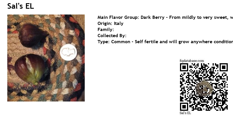 The confusion from Sal's Corleone and Sal's ( EL ) comes from the old Belleclare Nursery inventory list. Chris has 2 'Sicilian Black ' (Synonym for Sal's Corleone) listed, #30 Sicilian Black (Verna Grosso), then #31 Sicilian Black (Sal's) Corleone) (Fico di Capo) (Fico-Nera). You can see where the confusion starts. #31 is listed with a moniker/origin, followed by 2 more synonyms. Edible Landscaping is said to have gotten hold of Sal's (#39 from Belleclare list, with one synonym the same as #31, but clearly 2 different figs) and lumped it together with Hardy Chicago because they looked the same. This is the edge of the rabbit hole Rigo, and it's very deep. At this point Sal's ( EL ) gets tied into Hardy Chicago and one of the reasons an original Hardy -chicago"> Hardy Chicago, descendant of the original tree discovered by Fred Borne, is so hard to find. But to answer your question, Sal's ( Gene ) refers to Gene Hosey. Gene Hosey got his Sal's from Edible Landscaping before the owner started lumping them together with Hardy Chicago. Hence the two Sal's. So, for all intents and purposes, you can say Sal's ( Gene ) is pre-mixing and Sal's ( EL ) is post-mixing.