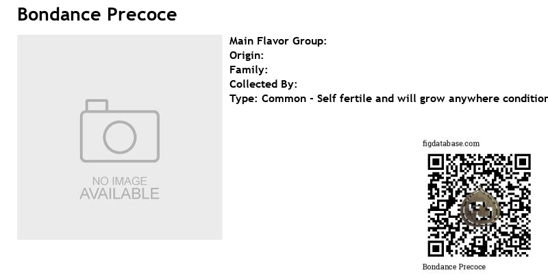 Bondance Precoce. Described and illustrated by Eisen (1901) as a pyriform fig, below medium, brown in color, with light-red pulp of fine quality.